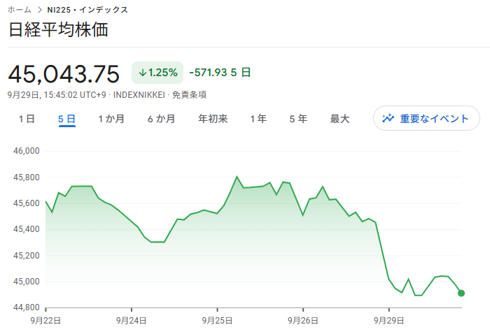 冒頭でも書いたように今日は300円ほど配当落ちで下がることを想定していたので、下落幅はほぼ同じくらい、そして節目の45,000円をキープしたのはよかったです。