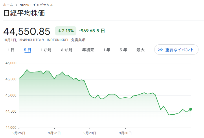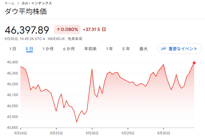 今日から10月になりましたが、マーケットは続落しています。今日の日本市場も終日マイナス圏で、米国株は反発したものの、米政府機関の閉鎖も始まりました。(前回のトランプ政権以来7年ぶり)