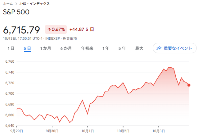 S&P500は0.44ポイント高の6,715、ナスダックは63ポイント安の22,780となり、こちらは6日ぶりに下落しました。