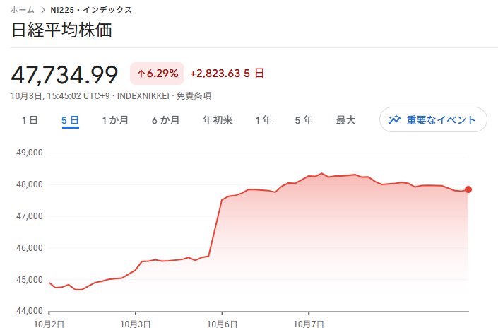 今日は自動車や不動産も売られて、ここまでの流れと少しちがった展開になりました。気になるのはドル円で、このままの流れだと153円を目指す動きにもなりつつあります。でも、これも高市相場。