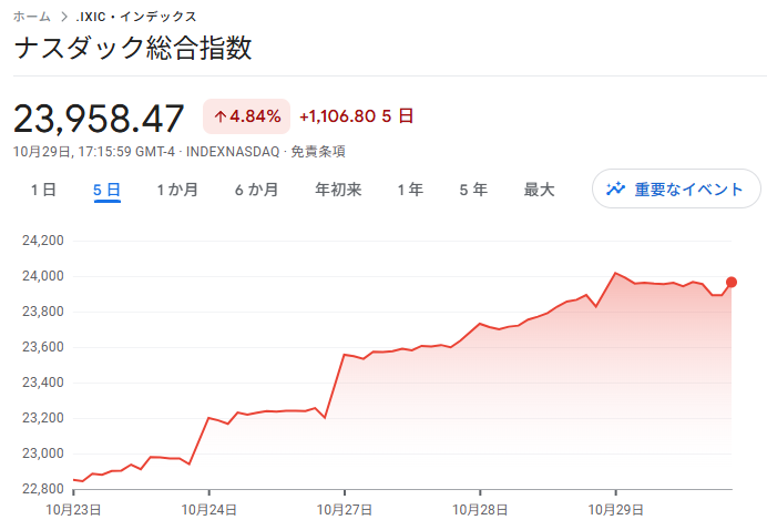 今週は重要イベントが続く1週間で、特に今日30日は重要な日でした。朝からM7の決算が出て、そして今日は米中首脳会談もありましたね。さらにFOMCと日銀会合も。米国株はハイテク中心に上昇、日本株もやや上昇でした。