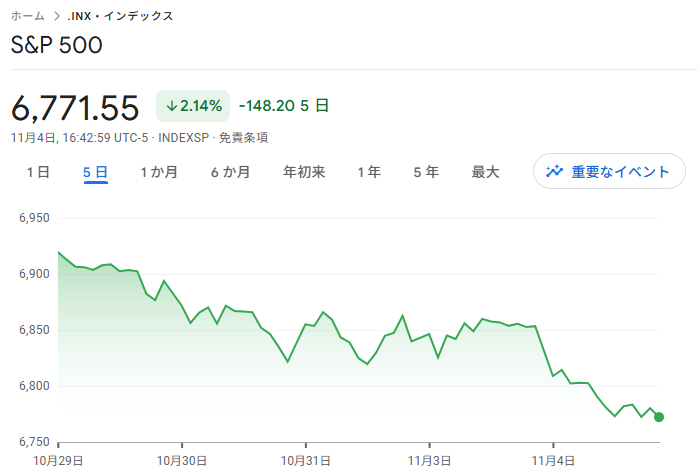 11月に入ってから相場がバタバタしていますね。米国株も急落し、今日の日経平均も重い展開。ただ日経平均に関しては朝が重かったものの午後からは回復し、5万円に戻ってきました。