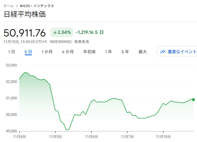【日本株】日経平均は大幅反発!節目の5万円台キープ。