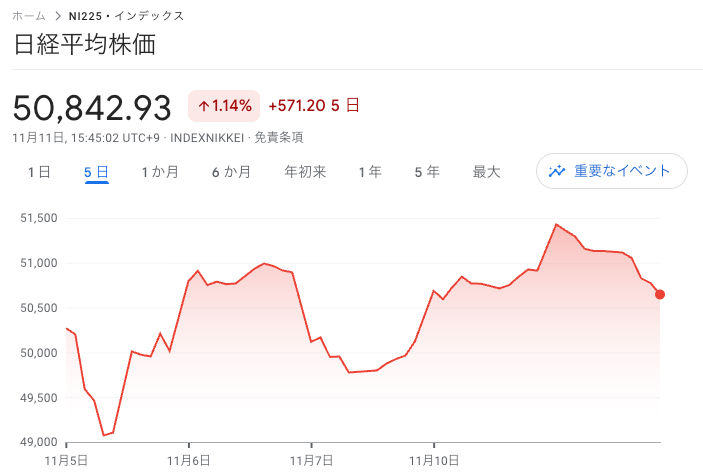 大引けにかけて渋る展開になりましたが、最終的に日経平均は68円安の50,842円で大引け。