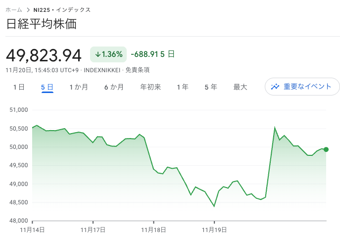 エヌビディア決算を経て、調整ムードだった半導体やAI株が反発。日経平均は序盤から5万円台に戻ってきました。序盤の30分で2,000円ほど上昇する展開になりましたが、勢いがあったのは前場でしたね。