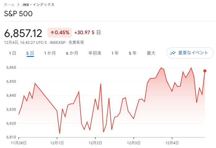 ダウ平均は5ドル高の47,888ドルでスタート、終盤は小幅に下落してあまり動かず。最終的に31ドル安の47,850ドルで取引終了。S&P500は7ポイント高の6,857、ナスダックは51ポイント高の23,505と3日続伸しています。