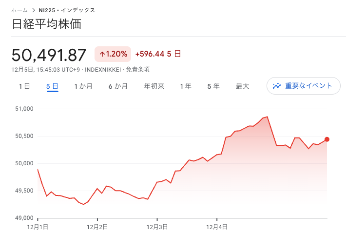 今日の日経平均は498円安の50,530円で寄り付きました。