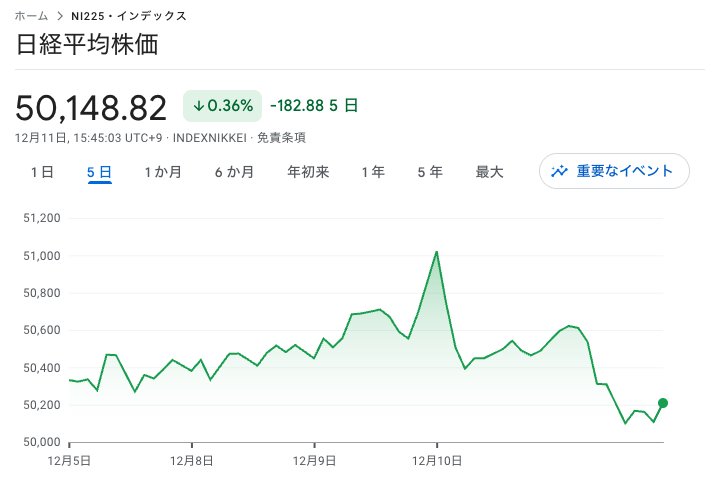 しかし、大引けにかけては反発し、最終的には453円安の50,148円で大引け。TOPIXも4日ぶりに反落となりました。