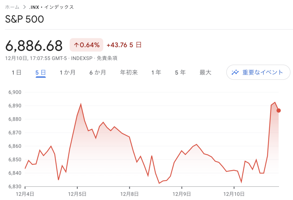 ダウ平均は13ドル高の47,573ドルでスタートも、中盤まではレンジが続きました。そして終盤、FOMCの結果がわかり、予想通り0.25%の利下げが決定。2026年の利下げが1回予定となり、これも予想通り。