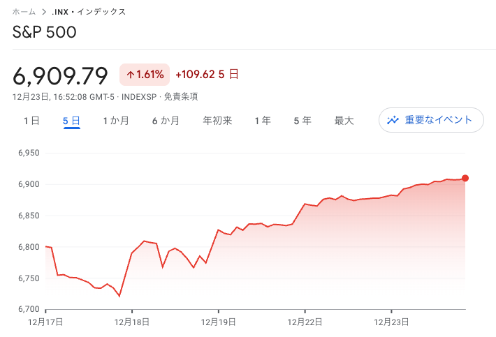 米国市場は堅調で、週の後半はクリスマス休暇もあって閑散としそうです。今日と明日はマーケットが動かずですね。金曜はオープンですが、積極的な売買は避けられそうです。