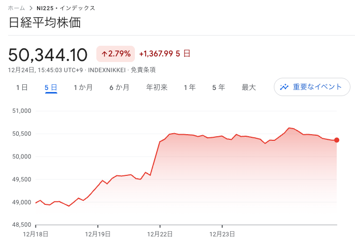 今日から米国は休場に入りますが、昨日も引き続き上昇となり、これで4連騰。S&Pは再び最高値を更新です。日経平均はちょっと重く、主力が下げたこともあって今日は反落。まだ5万円台をキープしています。