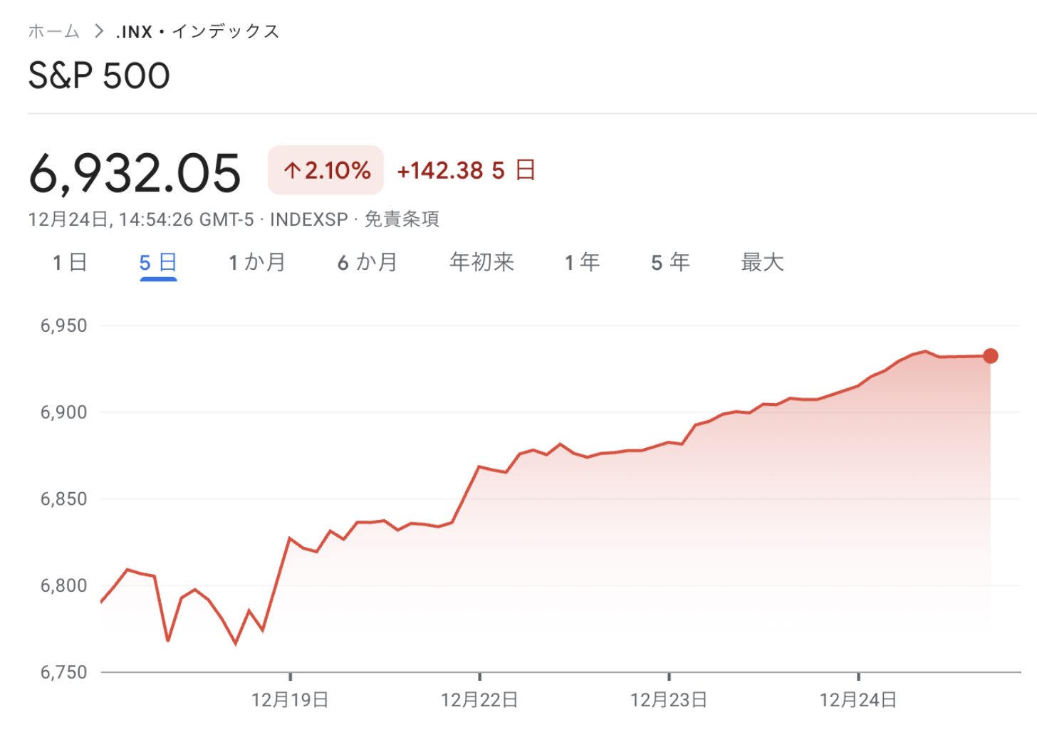 昨日の米国株は半休で、クリスマスモードでしたね。しかし短縮取引でもマーケットは堅調で、年末ラリーに期待の持てる相場になりました。