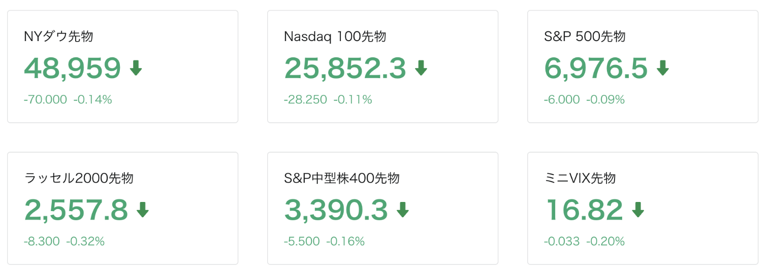 昨日の米国株は休場で、主な経済指標もなかったです。今ちょうど17時くらいですが、先物はやや下げていますね。 今日も週末ですし、あまり動かなさそうです。