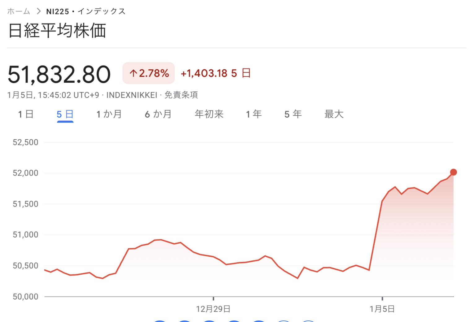 51,832円で大引けになりました。