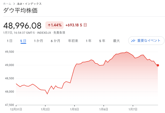 ダウ平均は少し反発スタート、序盤から買い上がる展開になりましたが、少しずつ利益確定の売りが優勢に。中盤は戻しましたが、徐々に下げ幅を拡大。最終的には466ドル安の48,996と反落して大引けになりました。こちらは49,000ドルを割れてきましたね。