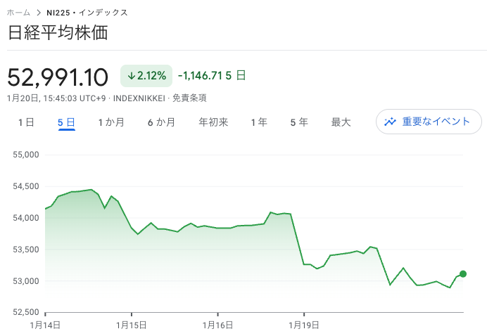 今日は節目の53000円を割れるなど、ちょっと嫌な展開になりました。ここから選挙戦に突入するわけですが、高い内閣支持率を武器に高市政権が勝つことが期待されています。高市トレードのシーズン2に期待ですね。