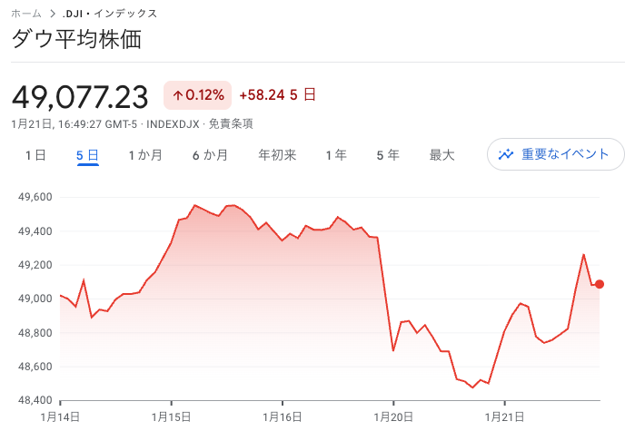 後半は上昇相場となり、最終的には588ドル高の49,077ドルと節目を超えて大引け。ダウは3日ぶり反発となりました。