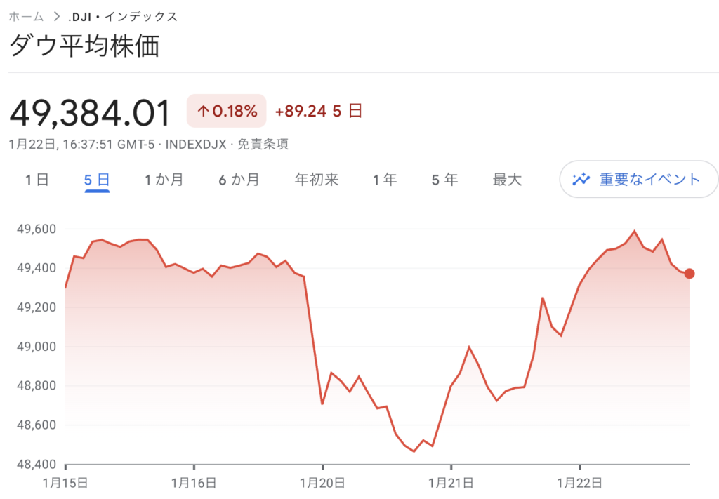 49,600ドル台まで上昇し、再び節目の5万ドルが見えてきましたね。後半は少し売られましたが、最終的には306ドル高の49,384ドルと続伸して取引終了。