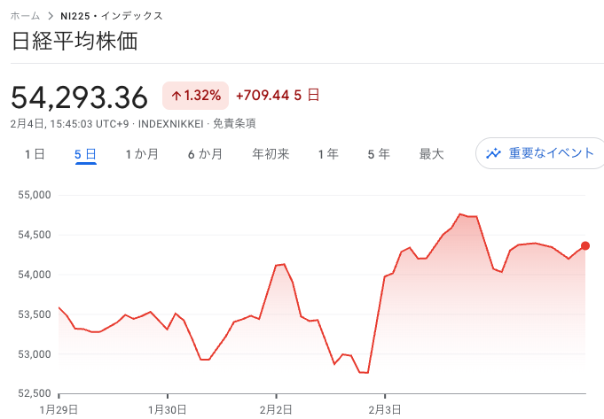 今日の日経平均は470円安の54,250円で反落スタート。