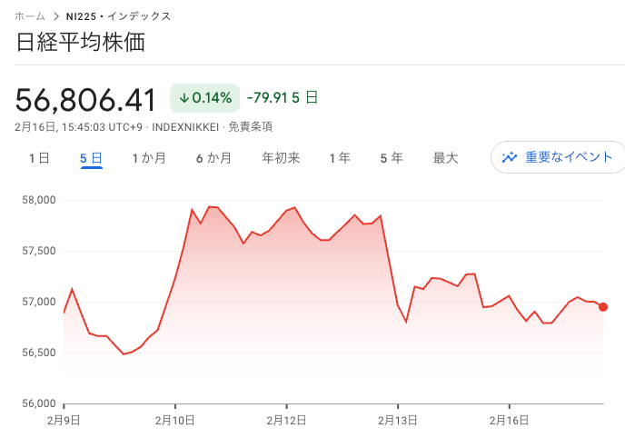 しかし、一時プラス圏浮上も上値が重く失速。後場の後半になってからはレンジで、大引けにかけてはまた売られました。最終的に日経平均は135円安の56,806円で大引け。