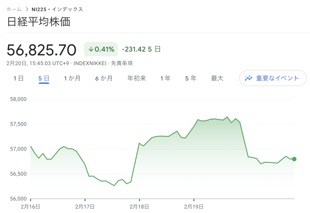 日経平均は後場に入ってからも失速し、56,000円台をウロウロ。最終的には642円安の56,825円で引けました。