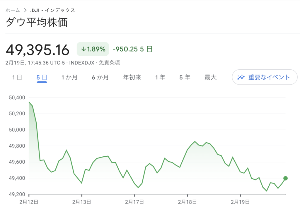 ダウ平均は49,576ドルで寄り付きましたが、序盤から売りが先行。そのあとは持ち直す場面もありましたが押し戻されました。ただ、引けにかけては下げ幅を縮小し、最終的に267ドル安の49,395ドルで大引け。