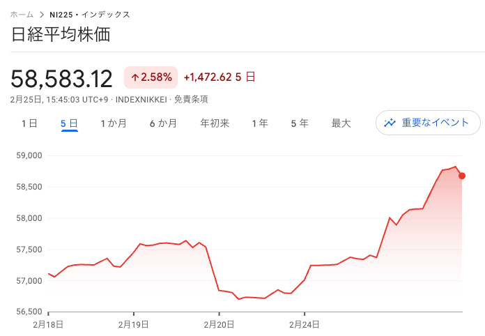 【日本株】日経平均は初の58,000円台へ!