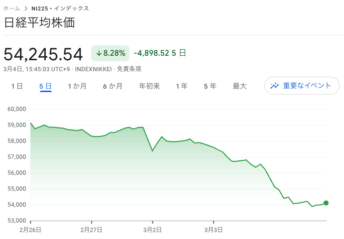 引き続き中東情勢が緊迫化しており、日米ともに調整局面が続いています。今日の日経平均も2,000円ほど下落し、これで高市政権の圧勝によってぶち上がった株価が元に戻りました。