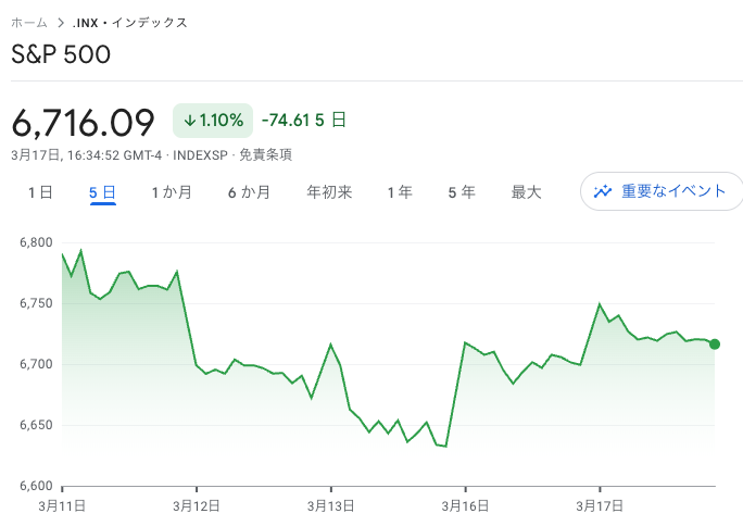 エネルギー株は原油高で堅調も、金融・産業株はちょっと重め。エヌビディアは小幅安でしたがAI需要期待から下げ止まりました。ナスダックは105ポイント高の22,479、S&P500は16ポイント高の6,716で引けています。