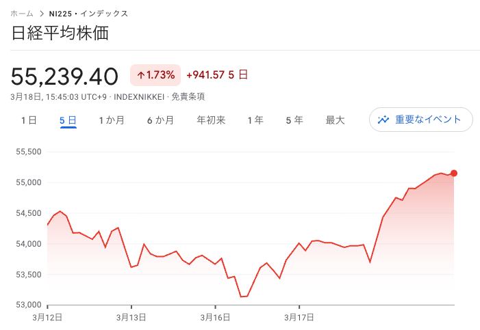 今日の日経は反発、5日ぶりに上昇しました。1週間ぶりに55000円台に回復、主力の半導体など反発して全体的にいい流れになりました。