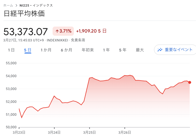 一時は53,000円台も割れるなどイヤな展開でしたが、今日は3月末決算の「権利付き最終日」。朝方の急落を絶好のディスカウントと見た配当&優待狙いの買いが下値をサポートしました。
