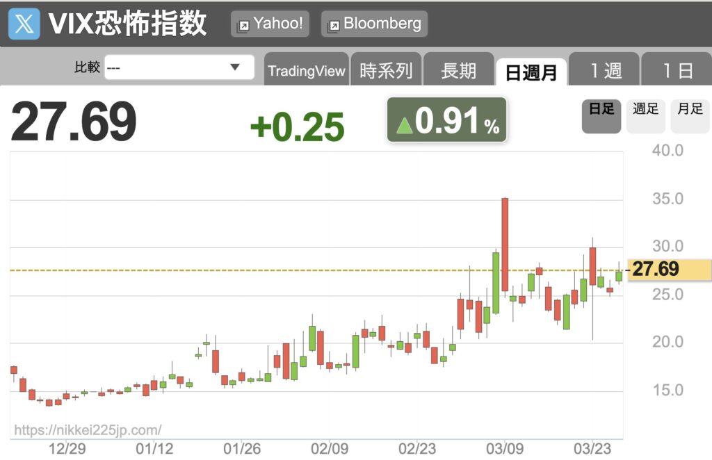 原油高を背景にエネルギーセクターは強かったですが、市場全体のムードを変えるまでにはならず。前日までの「停戦期待による自律反発」が消えて、むしろVIX恐怖指数が上昇するなど、投資家の不安心理が高まっています。