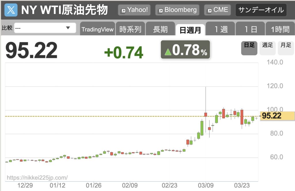 そのためには早いところ中東リスクが落ち着くしかないですが、トランプの言ってることも二点三点。原油高に金利高は変わらずで、日本の10年債も1999年以来の高値まで到達しました。