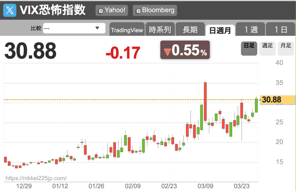 VIX恐怖指数が30の大台を突破していることからも、マーケットの不安心理は大きく、「割安に見えるから」という理由だけで落ちてくるナイフを拾うのは危険です。