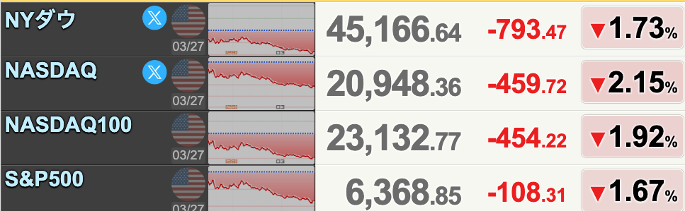 先週末の米国株はイラン戦争の長期化懸念でリスクオフが加速し、リスク回避の売りが殺到しました。