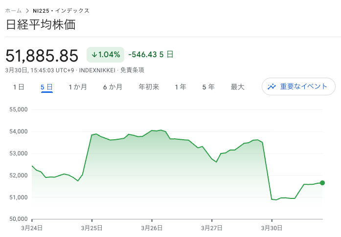 今日の日経平均は朝の時点で51,000円台まで下げている中でオープンしました。
