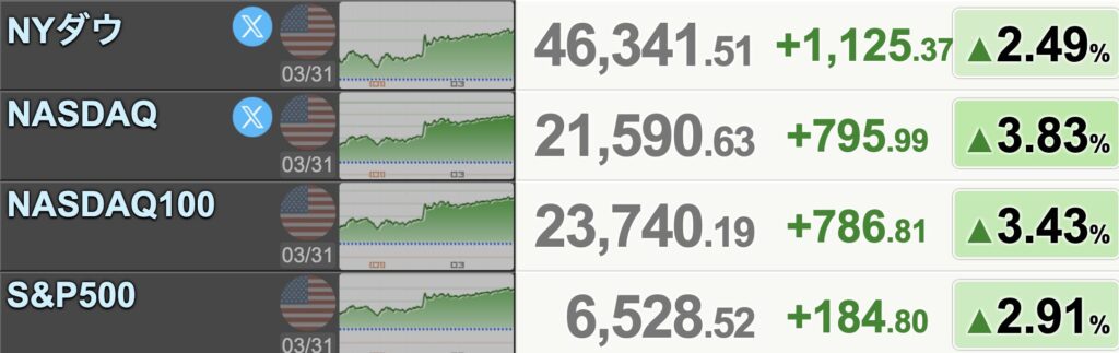【米国株】「イラン作戦終了」意向で急反発、ダウ1,000ドル超の暴騰