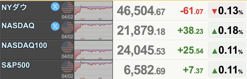 昨日の米国株はまちまちでした。ダウは小幅下落したものの、S&Pとナスダックは反発。