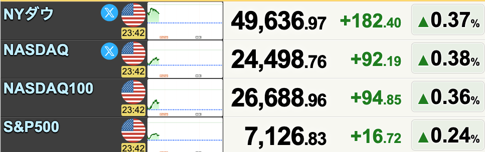 ダウ平均は245ドル高で始まりましたが、後半にかけて売られ、293ドル安の49,149ドルで引けています。S&P500は45ポイント安の7,064、ナスダックは144ポイント安の24,259で引けています。11業種のうちエネルギーだけ上昇しました。