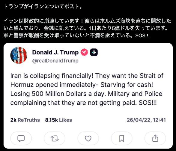 先ほどトランプのポストをXに投稿しましたが、